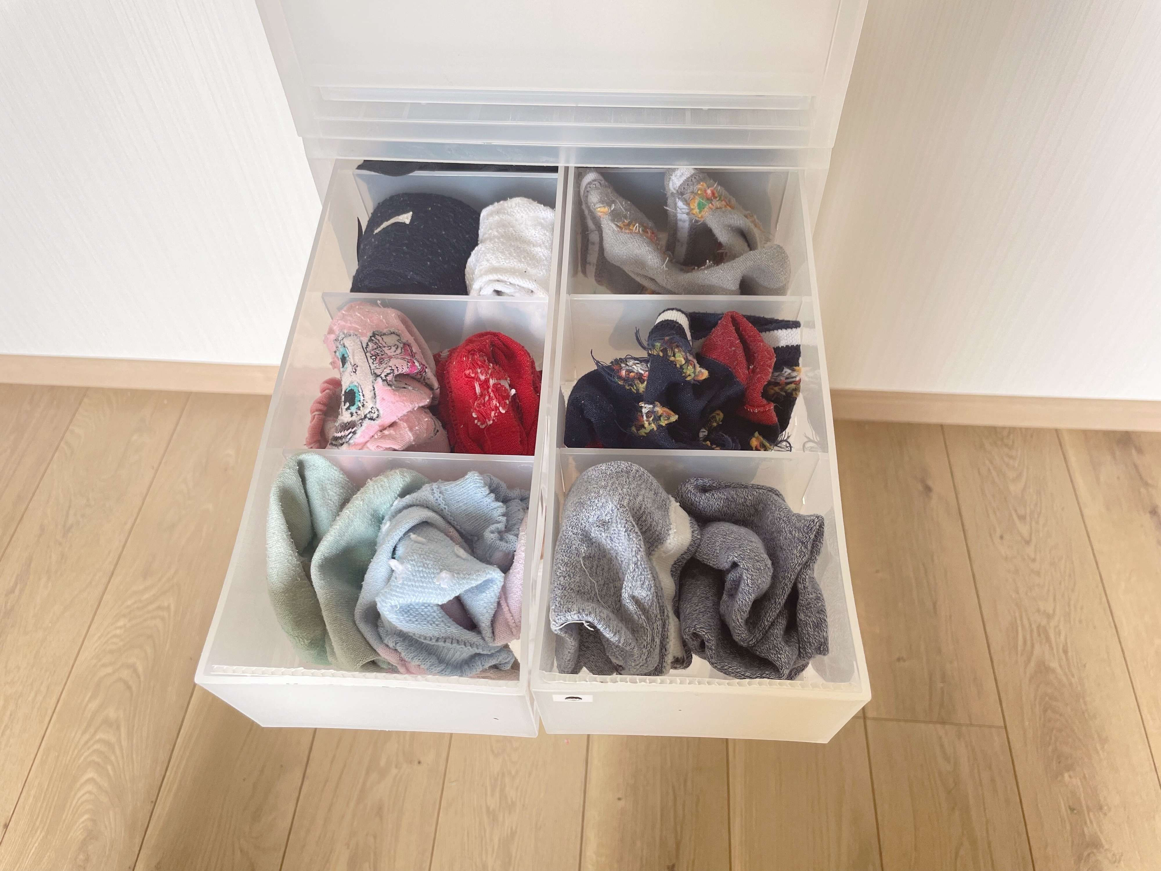 もちろん、しまうときも裏返しのままでOKです。仕切りつきのケースに収納すれば、見失うこともありません。