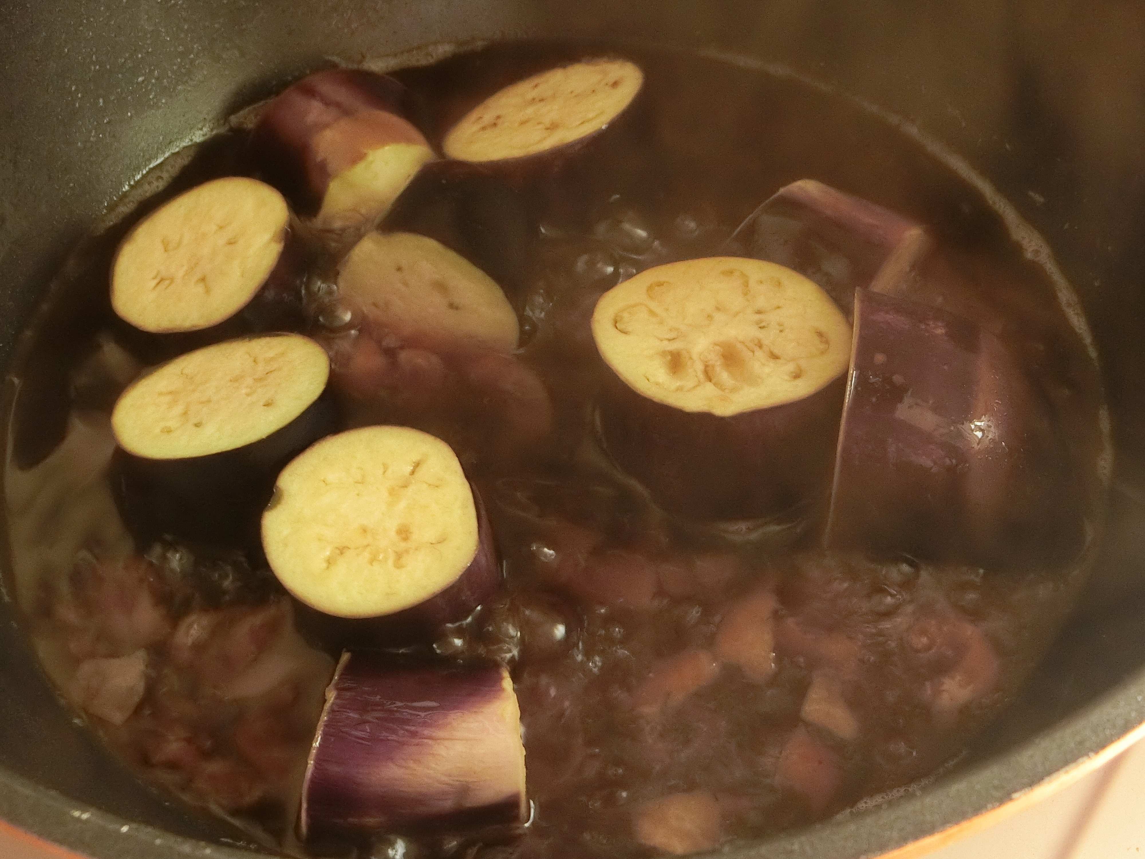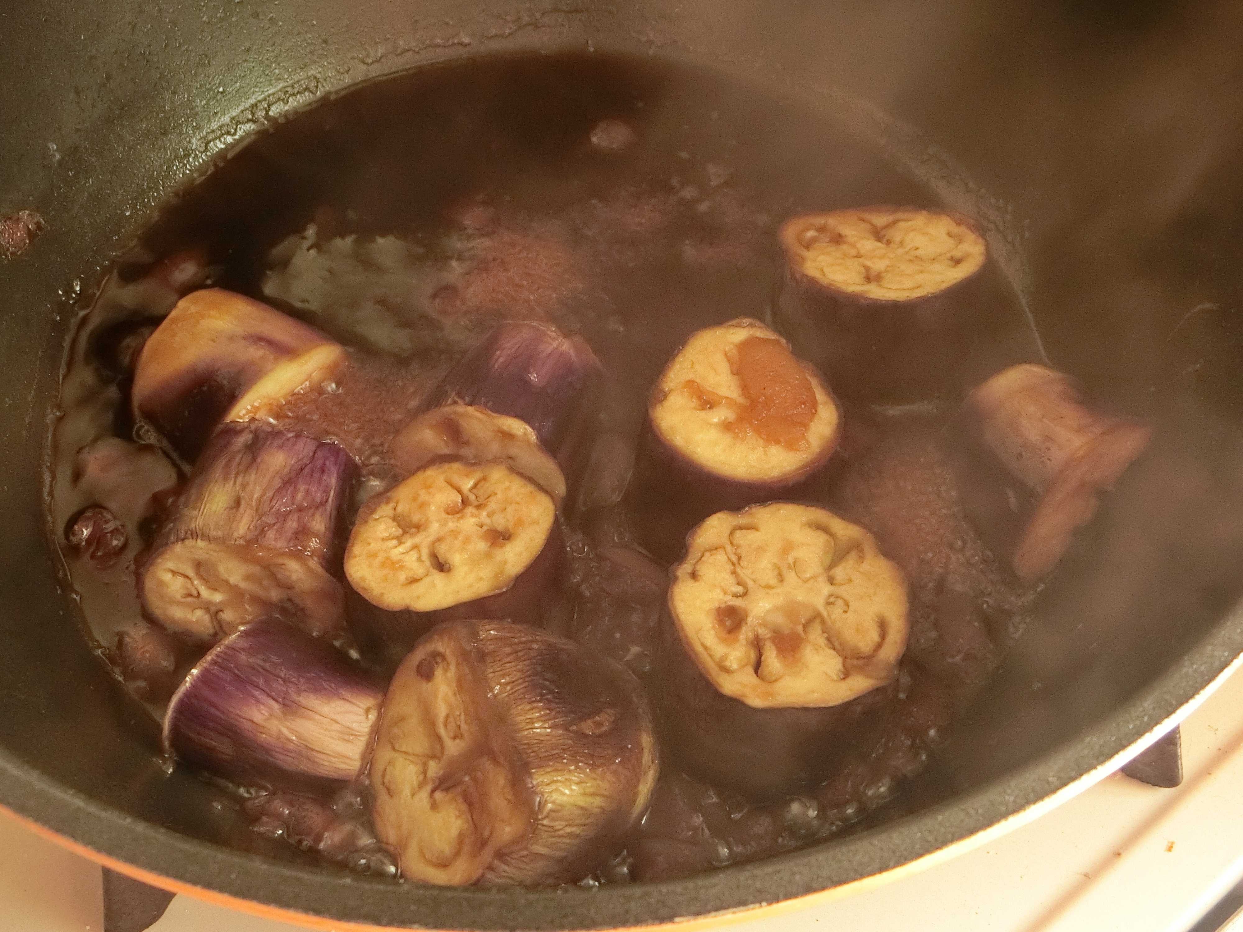 【3】中火で10分くらい煮て、ナスが柔らかくなったら完成。