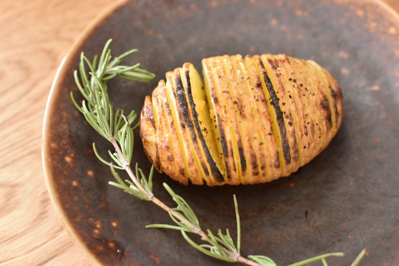 切れ目をたくさんいれて焼き上げた料理ですが、見た目が楽器のアコーディオンに似ていることから「アコーディオンポテト」として肉料理のつけ合わせとしても人気です。