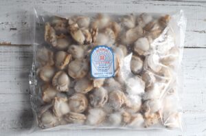 200度に予熱しておきます。天板に並べて全体に塩こしょうをふりかけたら、切れ目に流れるようにオリーブオイルを回しかけて5〜10分焼きます。