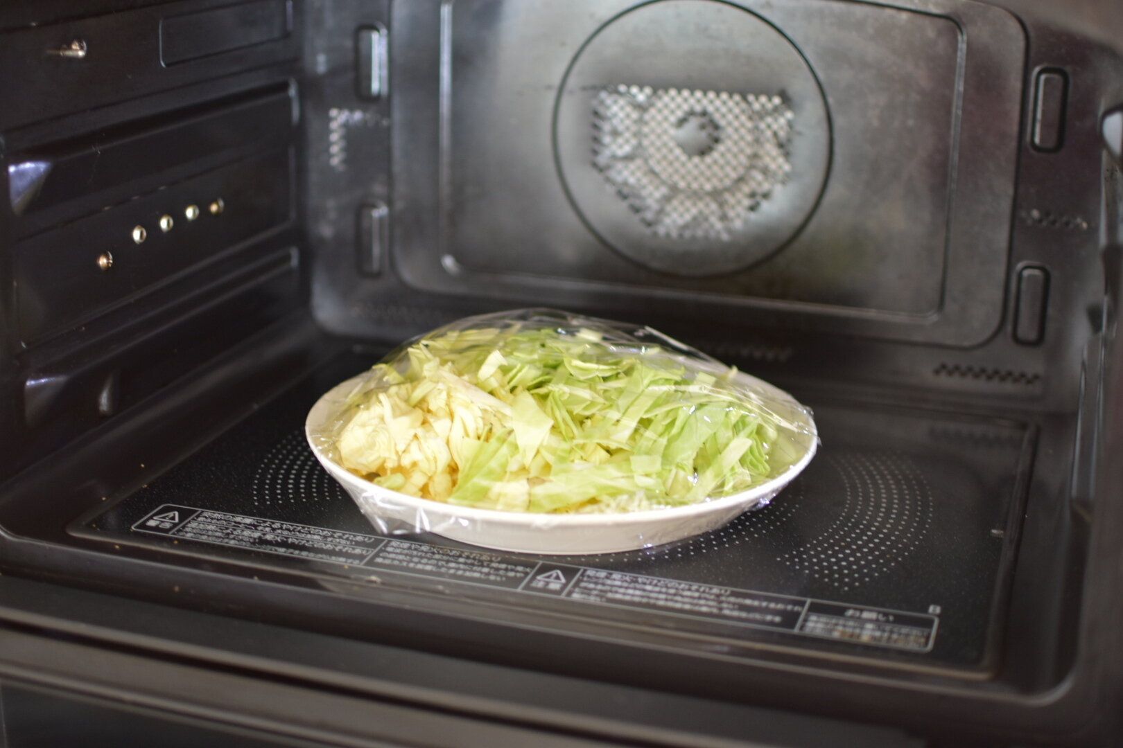 2.ふんわりとラップをかけ、600Wのレンジで2分ほど加熱する。全体がしんなりしたら取り出して全体をよく混ぜ合わせる。味見をして薄いようなら塩昆布を足して調節する。