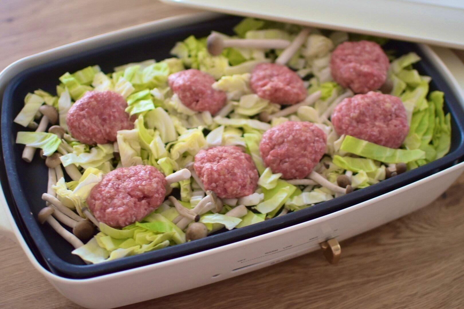 ご飯づくりをお休みしたい週末はホットプレート料理が定番。蒸し焼きにすれば、野菜をたっぷりと食べることができます。ハンバーグもフライパンで焼くよりもふんわりと仕上がります。焼く→配膳までがホットプレートで完成するので洗い物の時間も短縮。わが家のお助けメニューのひとつです。