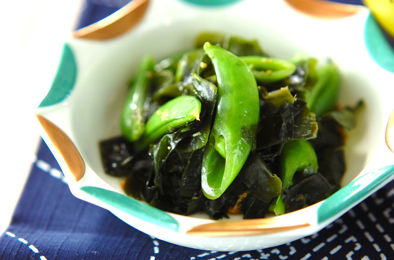 和食の献立にスナップエンドウを使った副菜を加えたいときは、ワカメとスナップエンドウのショウガ和えがおすすめです。