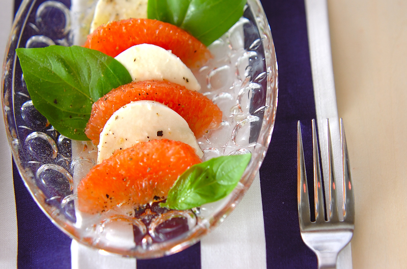 さっぱりとした副菜が食べたい場合は、「さわやかカプレーゼ風」はいかがでしょうか。カプレーゼは、トマトとモッツァレラチーズを使ったシンプルなイタリア料理ですが、このレシピではトマトの代わりにグレープフルーツを使います。彩りもよく、グレープフルーツの甘味や酸味といっしょに味わえるさわやかな一品です。