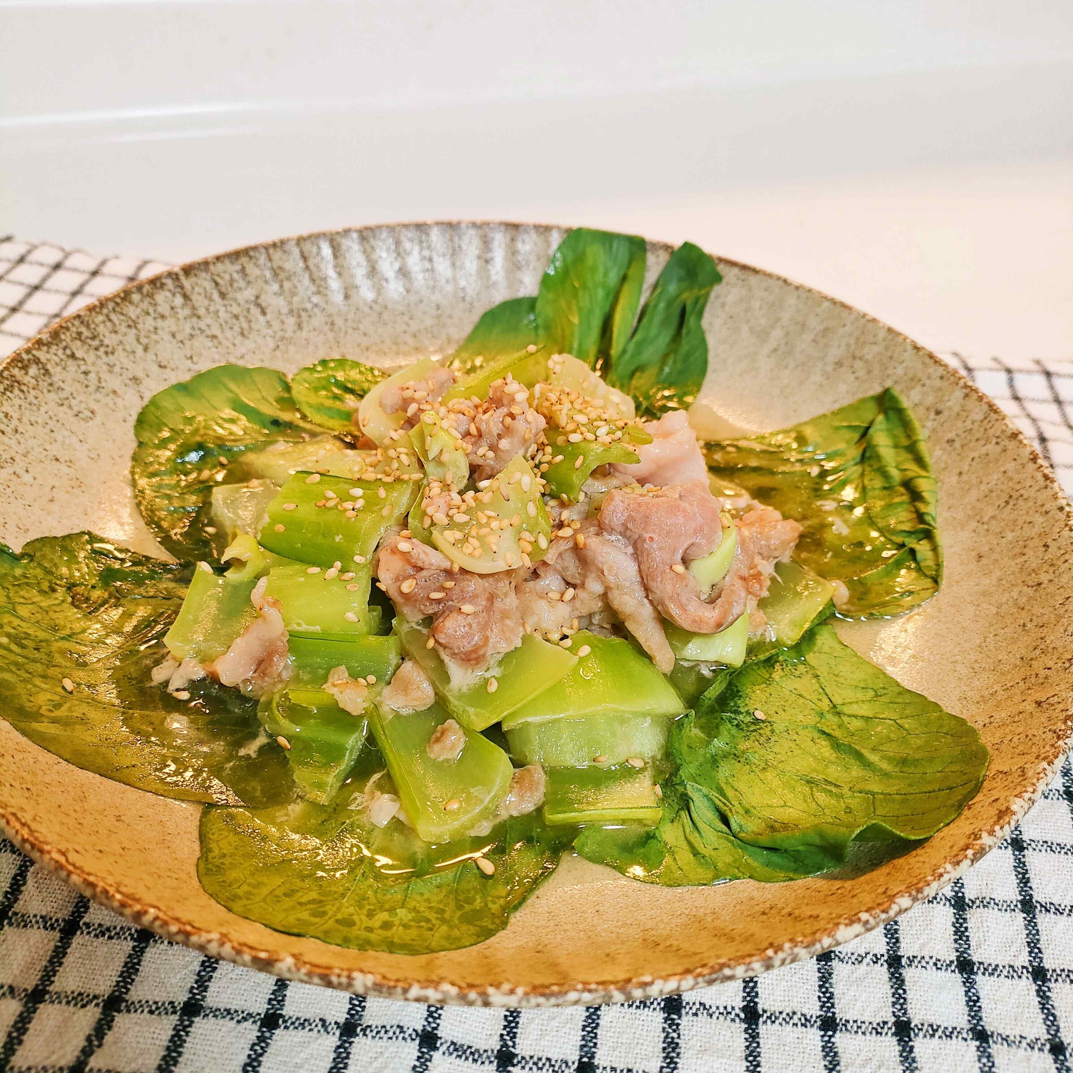 レシピ2:小松菜と豚コマのめんつゆ煮