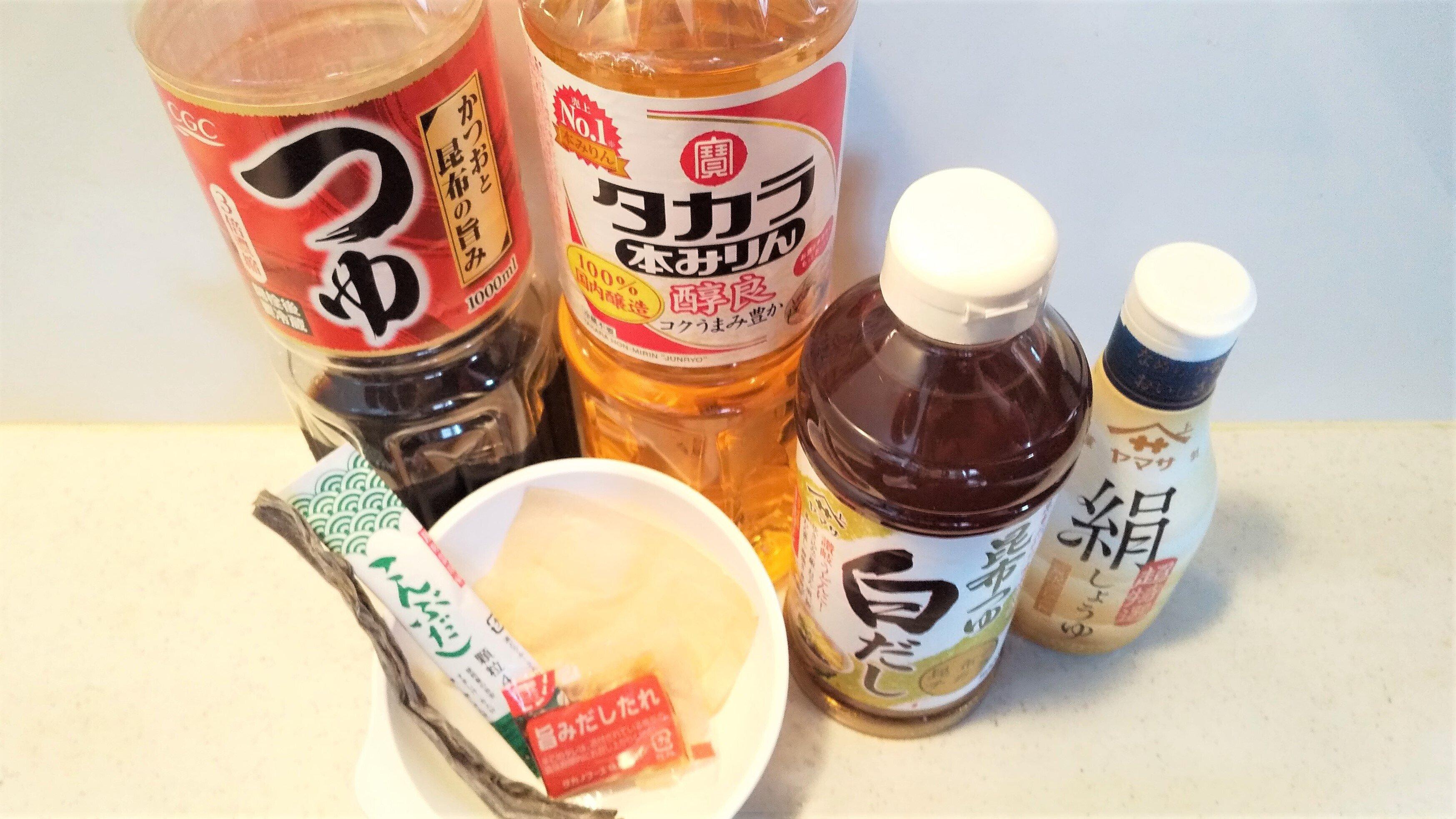 基本的には、昆布だしが含まれただしを使用することに加え、淡口醤油、食塩、砂糖、みりんの割合を考えて組み合わせれば代用することが可能だといえます。ただし、ご家庭によっては濃口醤油しかない場合や、いくつも調味料を計るのが手間だと感じられる場合もあるでしょう。