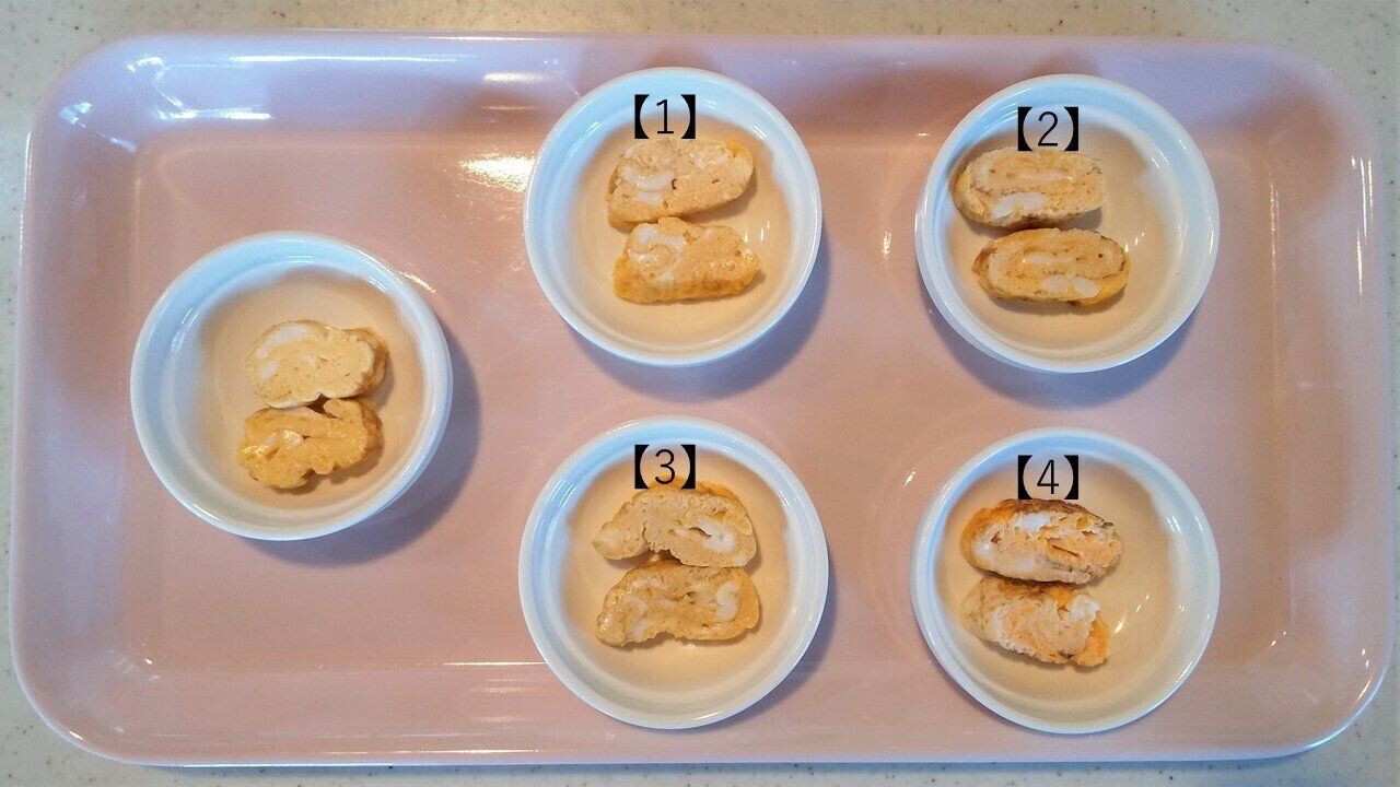 白だしと同じように焼き色が少なかったものは【1】【3】、それに対して【2】【4】にはやや濃い色の焼き色が付きました。