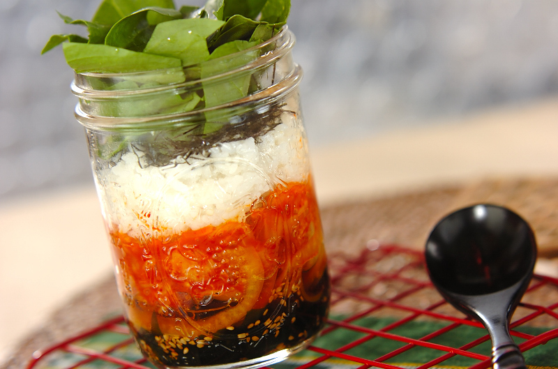 少ないご飯でカロリーや炭水化物量を抑えつつ、食べごたえもあるジャーサラダビビンバもおすすめです。透明の瓶に詰めることで、見た目が華やかでおしゃれなビビンバを作ることができます。