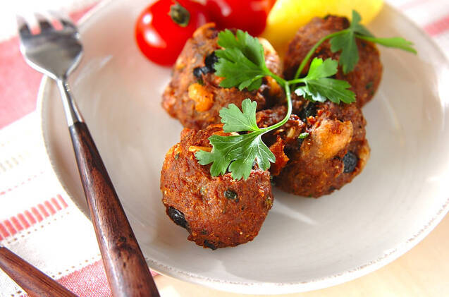 カシューナッツやレーズンの入った食感や香りが楽しいミートボールです。ほかにも、ラム酒やオリーブ、イタイアンパセリ、粉チーズなどを入れる変わり種のレシピになっています。