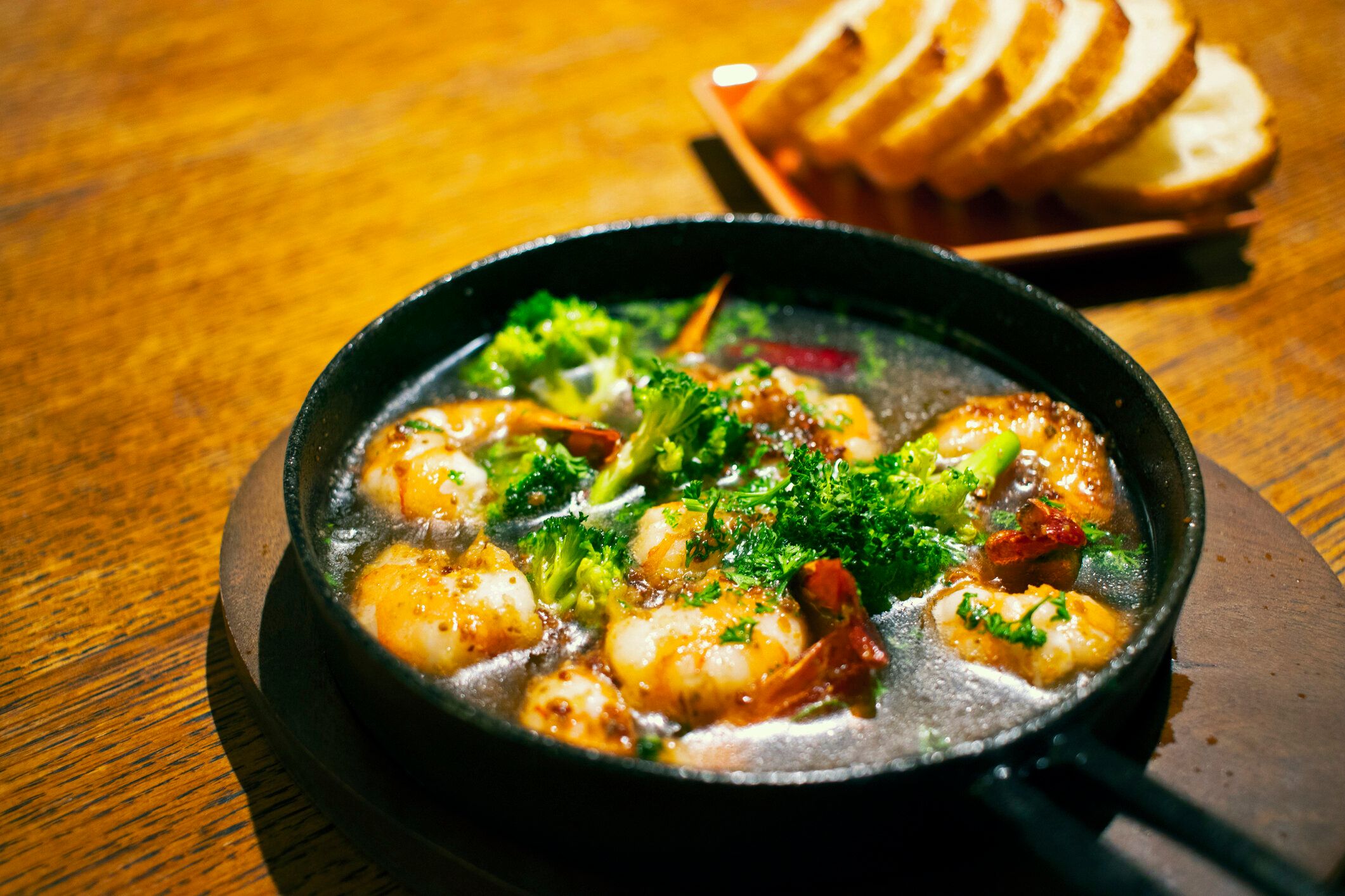 そのため、アヒージョを食べるときにパンにオリーブオイルを染み込ませすぎたりするとカロリーや脂質が高くなってしまいます。あえてオイルを残すなど、オリーブオイルの量に注意するようにしましょう。