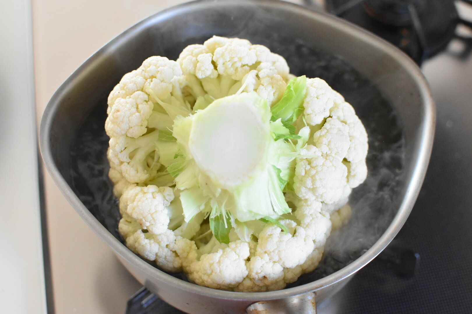 ※お酢は小さじ1~2を目安に入れる(カリフラワーの褐色をおさえて白く仕上がる)