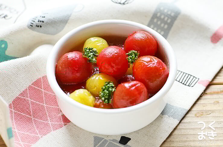 ころんとかわいいミニトマトのはちみつマリネ。おもてなしやパーティーにぴったりです。さっぱりとしたマリネがあると、ボリューム満点のメニューもパクパク食べられそう。誕生日パーティーの副菜におすすめです。