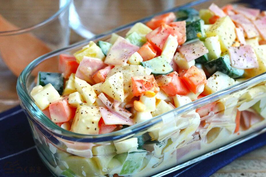 カラフルで、角切りの野菜の食感もポイントのごろごろポテトサラダ。下ごしらえや和え方のポイントに気をつけることで、さらに素材のおいしさ&コク深い味わいを楽しめそうです。