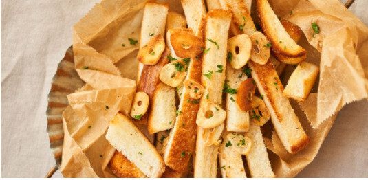 パンの耳で、おつまみガーリックラスク