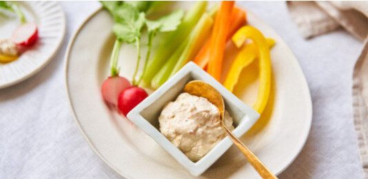 パーティーに彩りを添える野菜スティックもおすすめです。クリームチーズ、かつお節、しょうゆと発酵食品がふんだんに入ったディップでヘルシーな一皿が簡単につくれちゃいます。