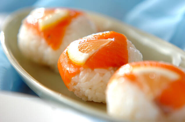 見た目もかわいい、サーモンのひとくち寿司。レモンも添えれば、彩りも鮮やかで気分が上がりそうです。調理時間が約15分なので、パーティーメニューにサッとつくってみんなで楽しめそうですね。