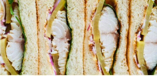 パーティーメニューとして今大人気のさばサンドはいかがでしょうか。ポイントのたくあんがアクセントとなりコリコリとした食感とほどよい塩気でさばとの相性も抜群です。