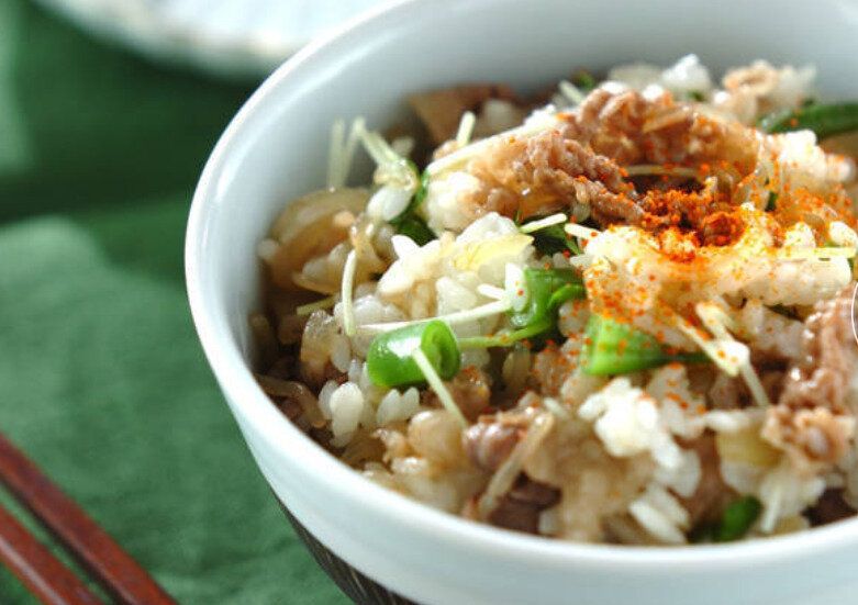 基本的な調味料でしっかり味つけをした薄切り牛肉と玉ねぎ、糸コンニャク、そして炊きたてのアツアツご飯が相性バツグンの混ぜご飯のレシピです!ご飯にサヤインゲンや貝割れ菜を混ぜて食感もアップ。野菜のフレッシュなうま味が加わってよりおいしさが増します。どんぶりメニューとしてもおすすめの一品です!