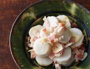 ドレッシングの爽やかな酸味と、リンゴやレーズンの甘さが相性抜群です。見た目も味もおしゃれに仕上げた一品です。レシピではバルサミコ酢を使用していますが、バルサミコ酢がなければ、お好みのお酢を使ってつくってみましょう。