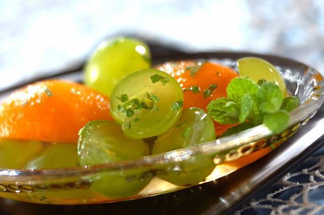 • びわのおすすめレシピ2:ビワとマスカットの白ワインとミントの香り