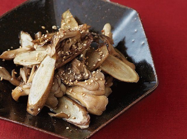 まいたけはほぐす。ごぼうは皮を洗い、斜めに薄切りにする。フライパンにごま油を中火で熱し、ごぼうを炒め、しんなりとしてきたら、まいたけ、Aを加えて炒める。汁けがなくなったら、ごまを混ぜる。(熱量118kcal、塩分1.0g)