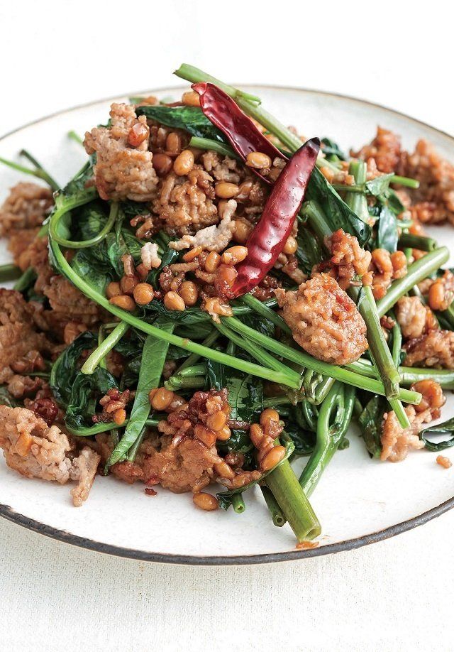 ひき肉と空芯菜のアジア風炒め