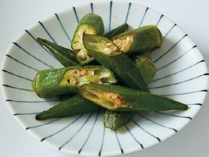オクラ20本はへたを取ってがくのまわりをむき、斜め半分に切る。フライパンにサラダ油、バター各大さじ1を弱めの中火で熱し、オクラを炒めてめんつゆ小さじ4を加えてからめる。