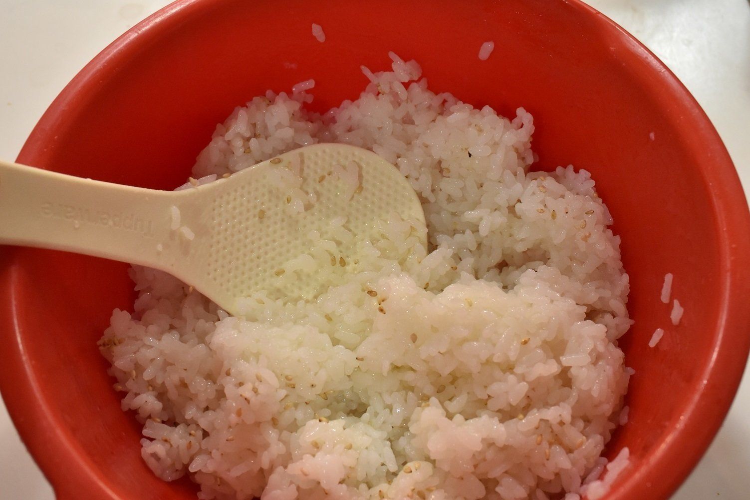 早速、すし酢代わりに使ってみました。炊き立てのご飯に、昆布の出汁酢と塩を少々。白ゴマをたっぷりかけて混ぜ合わせると。そのまま食べてもおいしいすし飯になりました。