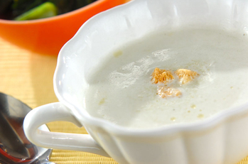 スープのなかに、バターの風味がしっかりと染み込んだ具材と、甘い牛乳・生クリームが合わさって、ほっとするひとときを演出してくれそうです。味つけは薄味なので、そら豆そのものの味わいが楽しめます。小さいお子さんでも食べやすいメニューです。