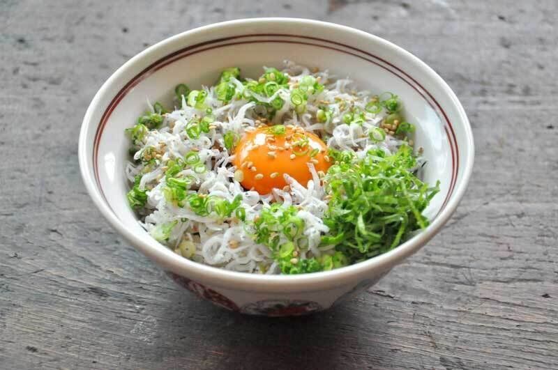 こちらも火を使わないでつくれる、しらすと薬味をご飯にのせるだけのお手軽丼。さわやかな薬味と、香ばしいしょう油の香りがあと引くおいしさです。薬味はいろいろな種類のものをたっぷりのせると、食感や味が変わってよりおいしいですよ。