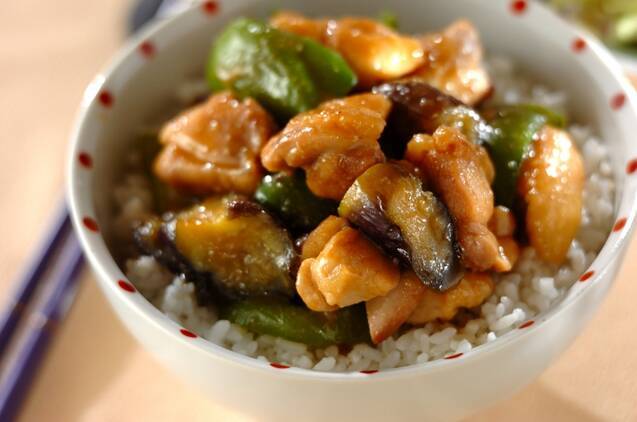 鶏とナスのコク旨みそ丼