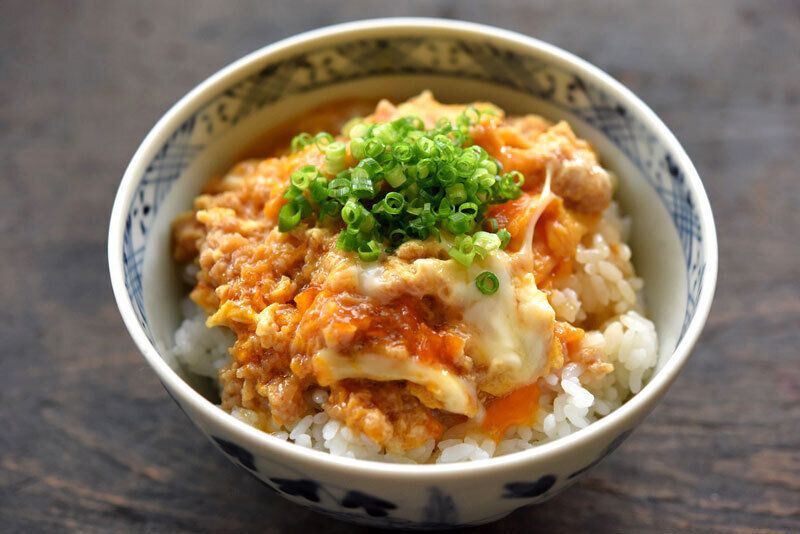 鶏もも肉でつくることが多い親子丼を、火が通りやすい鶏ひき肉でアレンジした一品。具材を煮る時間が短くすむので、薬味をきざむ時間をいれても15分たらずで完成できてしまいます。卵をとろとろに仕上げたいときは、すぐに火を止めて余熱で蒸らすのがコツですよ。