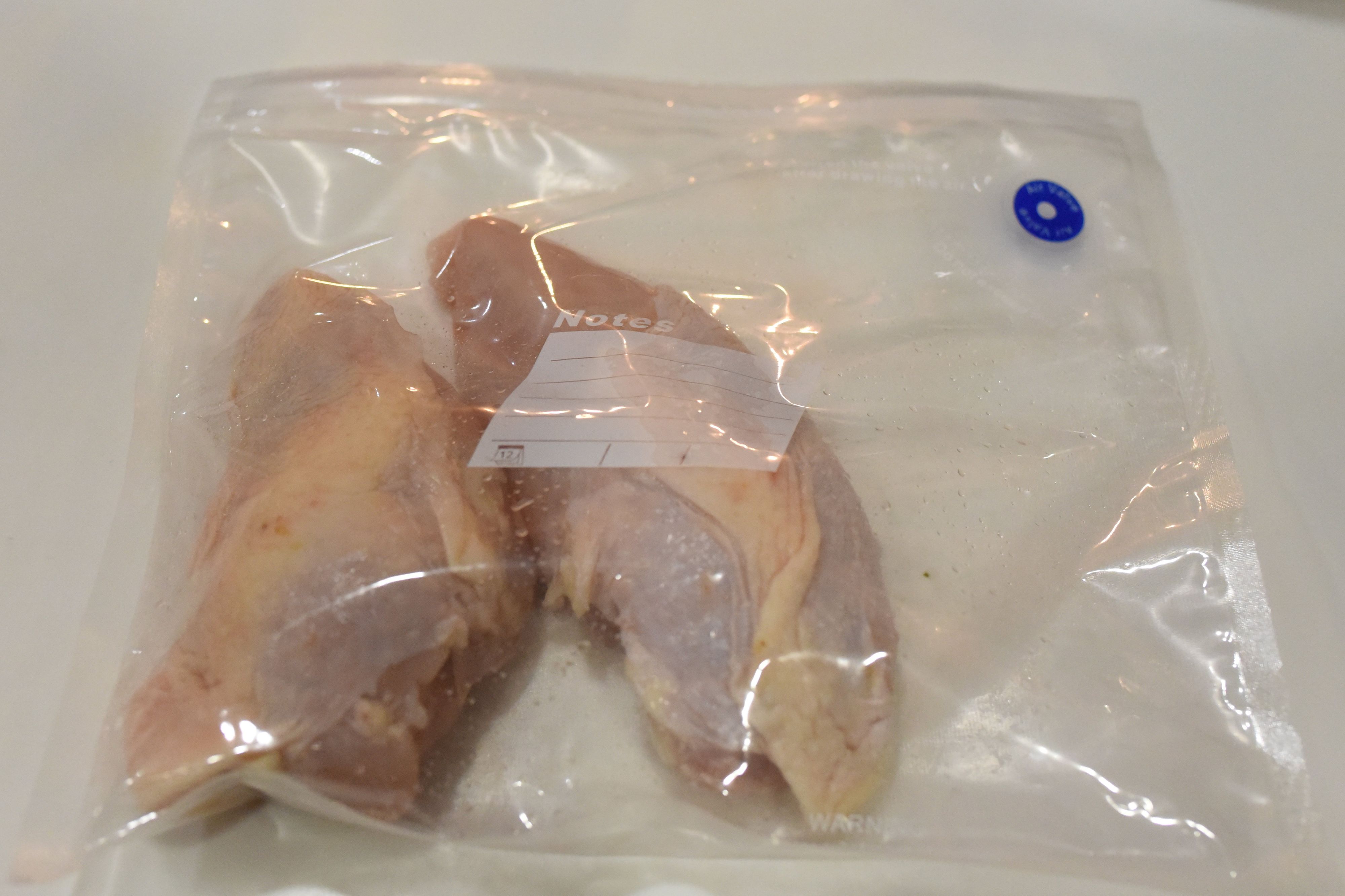 ニトリの「真空フリーザーバッグL」は、4枚入りで価格は370円(税別)。1枚当たりのサイズが、27.7cm×25cmと大き目で、鶏胸肉なら2~3枚は入れることが可能なサイズです。