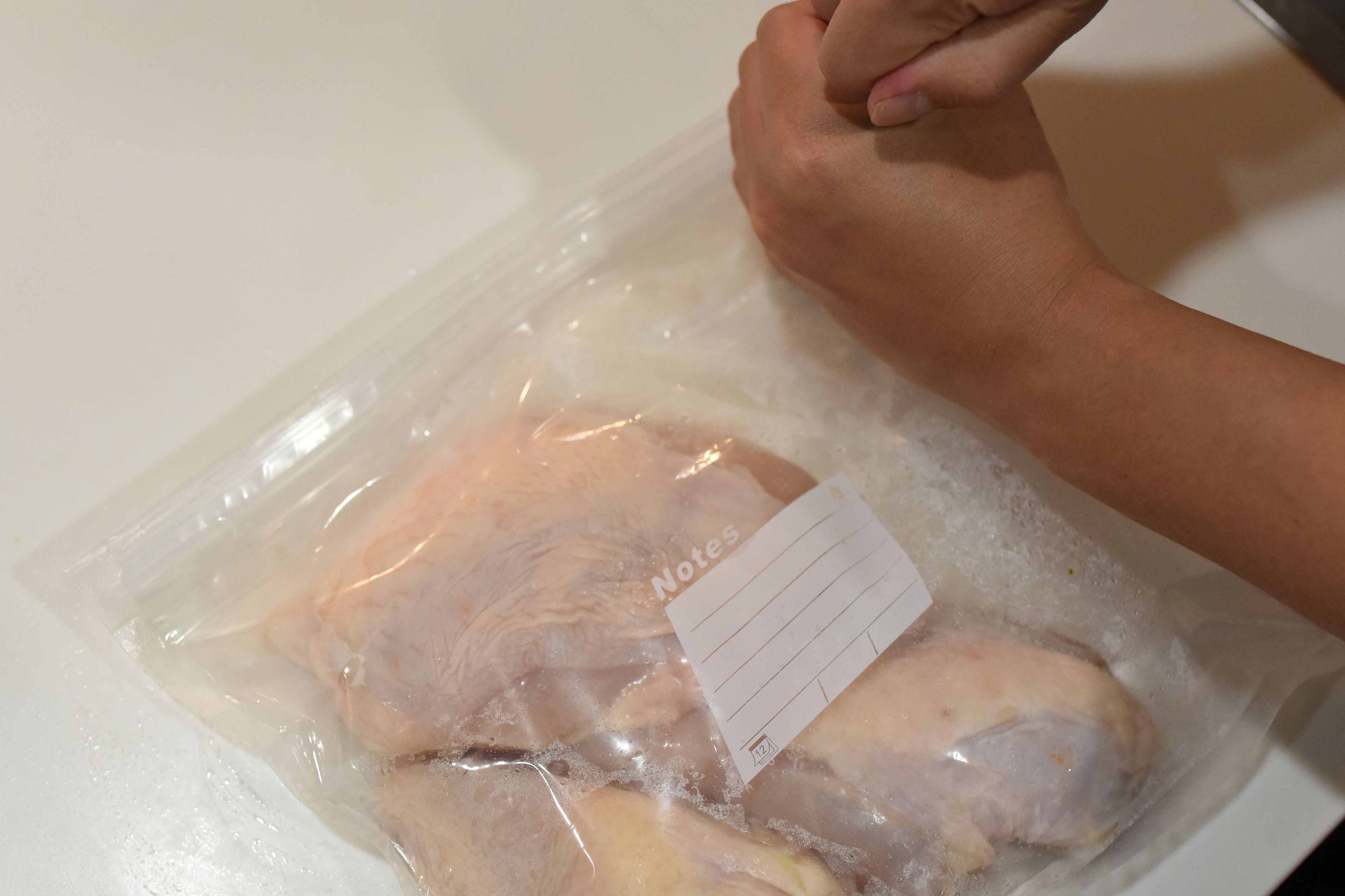 食材を冷凍庫で保存する際に、食材をジッパーのついた保存袋に入れることありませんか?手軽に使えるし、安心感がありますよね。でも保存袋から空気をしっかり抜くことが難しく、いざ保存しておいた食材を使おうとすると霜がついてしまっていたり、食材が乾燥してしまったりして、美味しくなくなっていたこともあるかと思います。