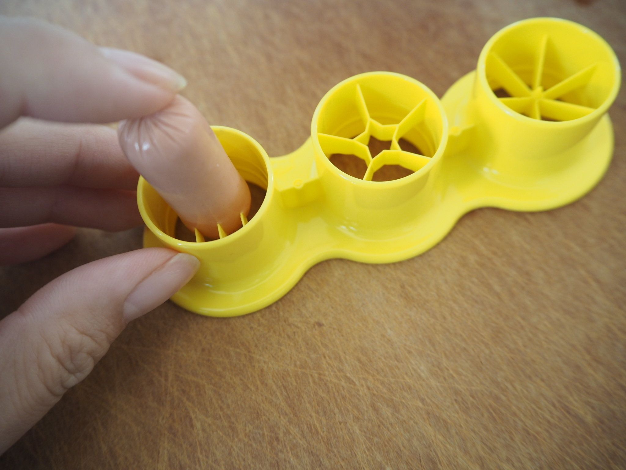 使い方も簡単!タコは黄色の型で足をカットして、赤の型で顔を押してあげるだけ!