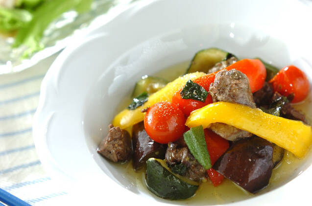 レバーのおすすめレシピ2:レバーと野菜のオイル煮