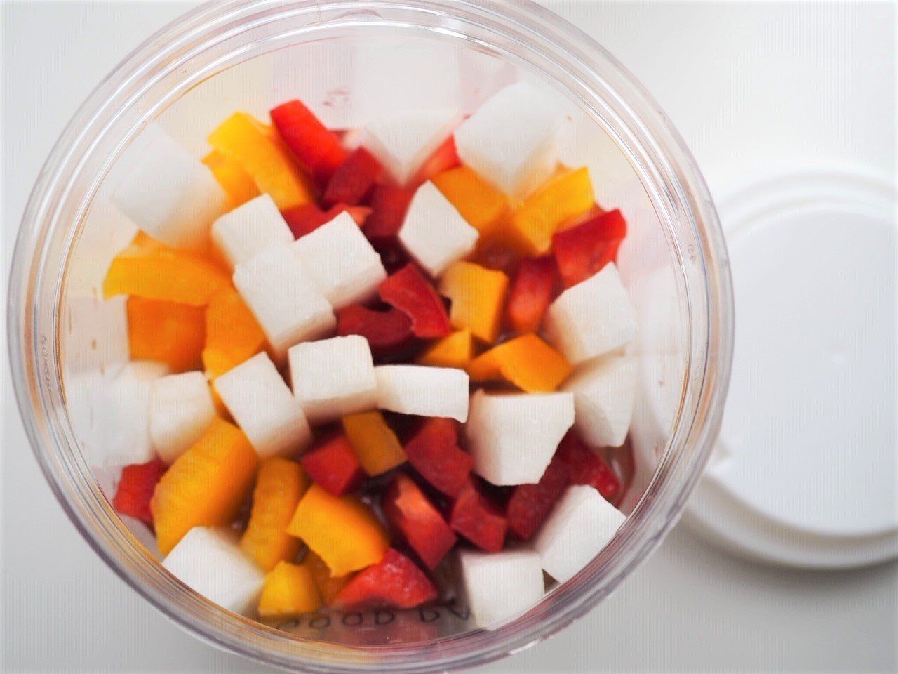 材料 :大根(150g)・赤パプリカ/黄パプリカ(各1個)