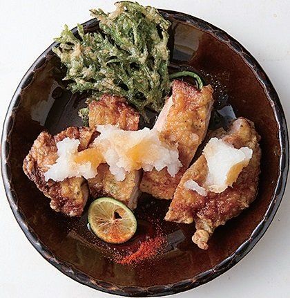 サクッと揚げた豚肉と香り高い春菊をさっぱりだれで召し上がれ!