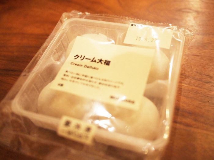 きんぴらやおひたしなどの素材を生かしたお惣菜もメインラインナップですが、無印良品の冷凍食品には嬉しいスイーツまでございます。こちらは日本の冷凍飲茶シリーズのクリーム大福。4個入りで税込390円です。