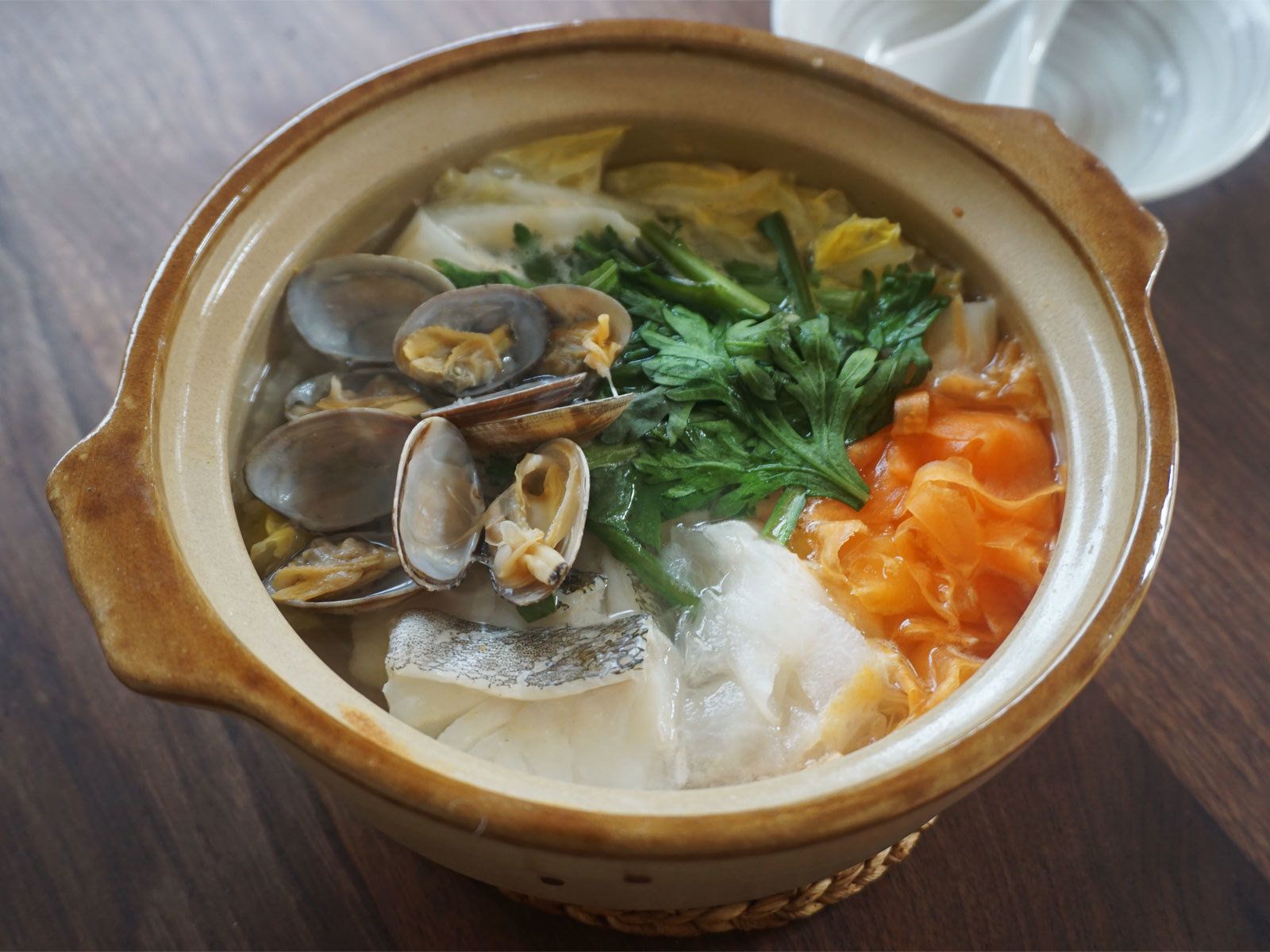 料理酒de「1分鍋」:鱈とあさり、冬野菜の1分鍋
