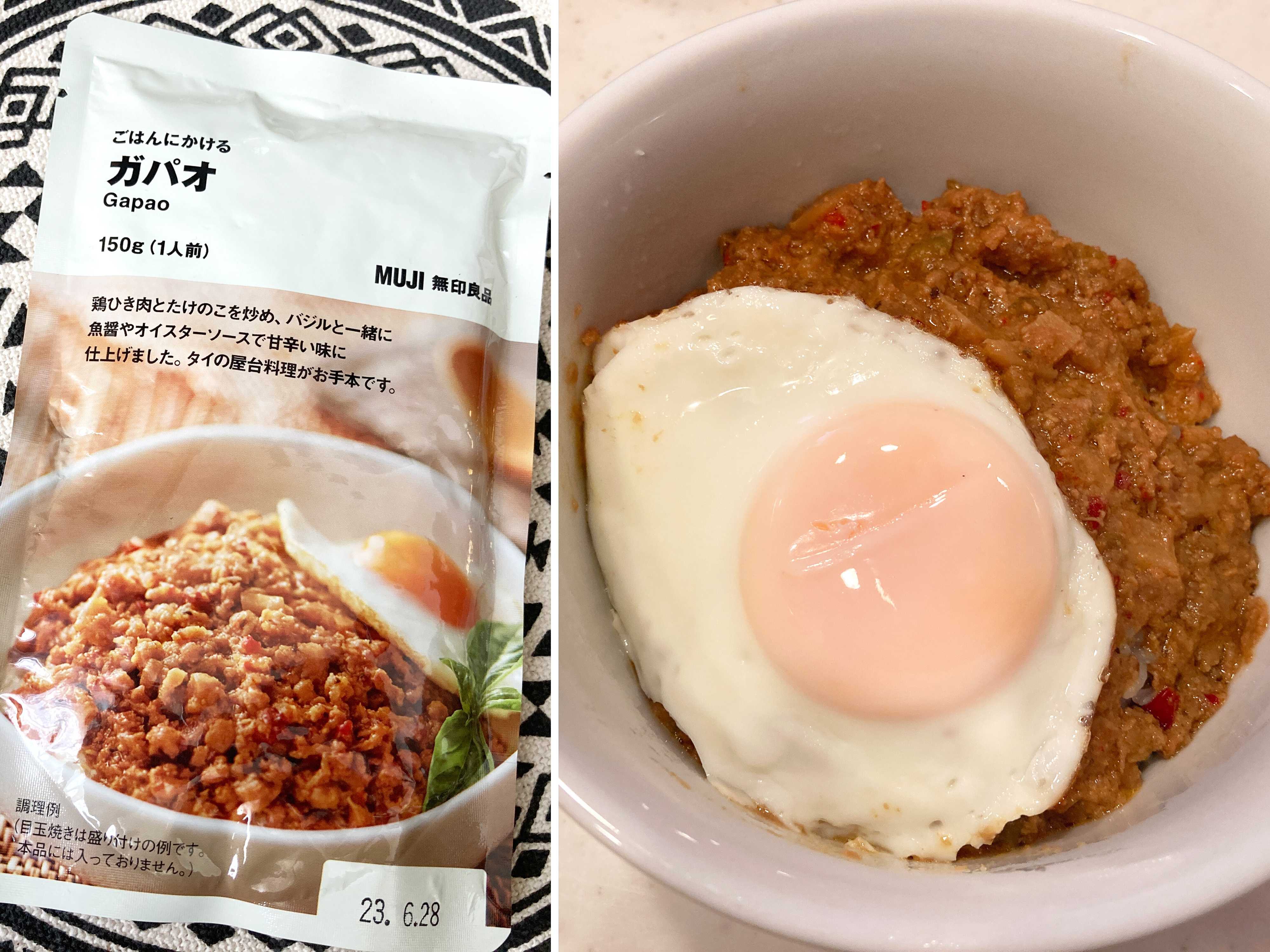 鶏ひき肉とたけのこをバジルと一緒に魚醤(ナンプラー)やオイスターソースの甘辛い味で炒めた「ガパオ」。