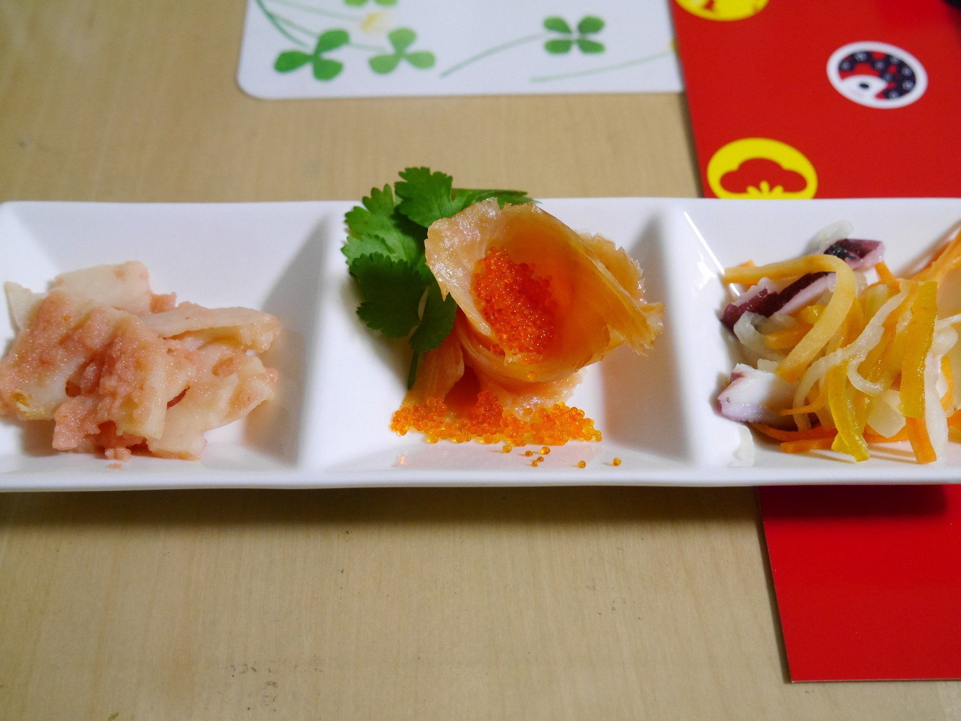 みい太さんが作るのは、時短メニューを数品ずつのせたワンプレートおせち。柚子ジャムとタレで味つけた「ブリの照り焼き柚子風味」に、柚子ジャムと寿司酢で和えた「柚子なます」など、調味料と混ぜるだけのお手軽さ!お正月用のマットと祝箸でセッティングすれば、見た目にも華やかになっていいですね♪