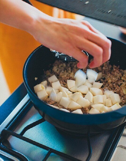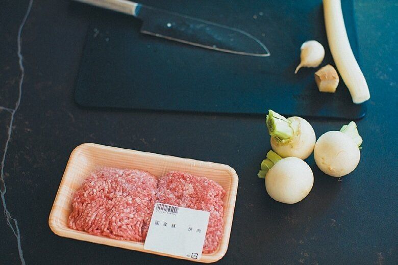 ひき肉とかぶを炒めて。
