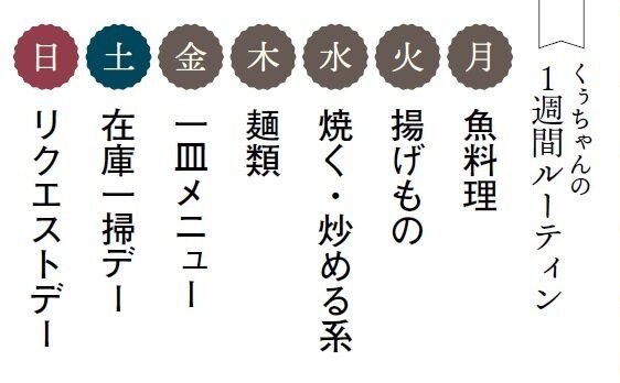 私も最初は3日分の献立を考え、3日分の食材を買うことからスタートしました。今も7日分のメニューを一から考えるのは大変なので、曜日ごとにメイン料理のジャンルを決め、そのなかで考えるようにしています。