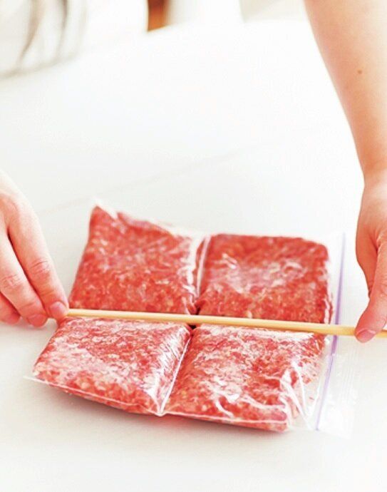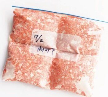 *ひき肉は[A]、玉ねぎと一緒に冷凍用保存袋に入れ、もみ込んでから広げて筋目をつける。