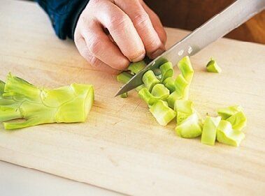 茎は火が通りにくいので、細かい角切りに。最終的につぶすので、皮はむかないでOK!