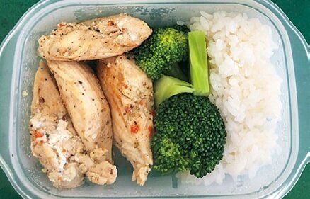 「ほりにし」で味つけした鶏胸肉。ブロッコリーが高いときは冷凍品。