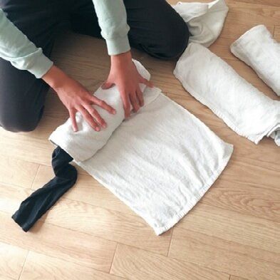 体を拭くタオルはたたまず、下着をくるくると巻いて脱衣所のかごへセット。お風呂から出たら、自分の下着が巻かれているタオルで体を拭いて、中の下着を身につけます。