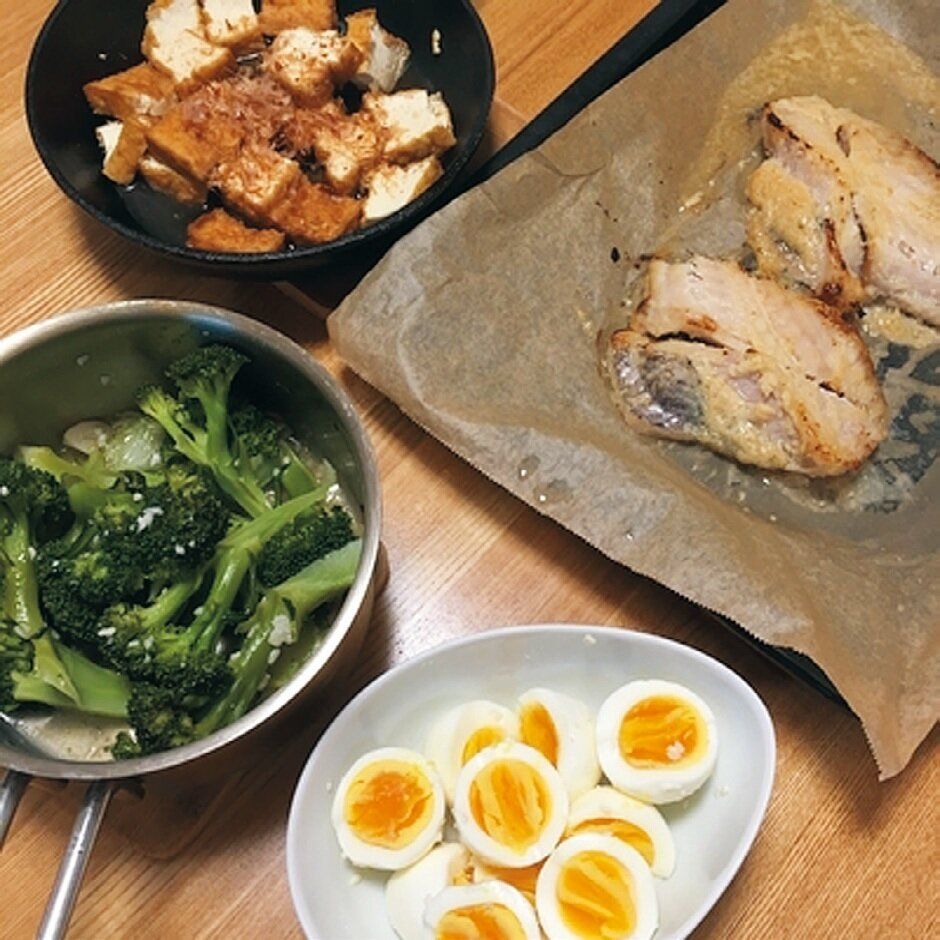 (1)肉or魚(2)大豆製品(3)卵料理(4)野菜でパターン化してます。