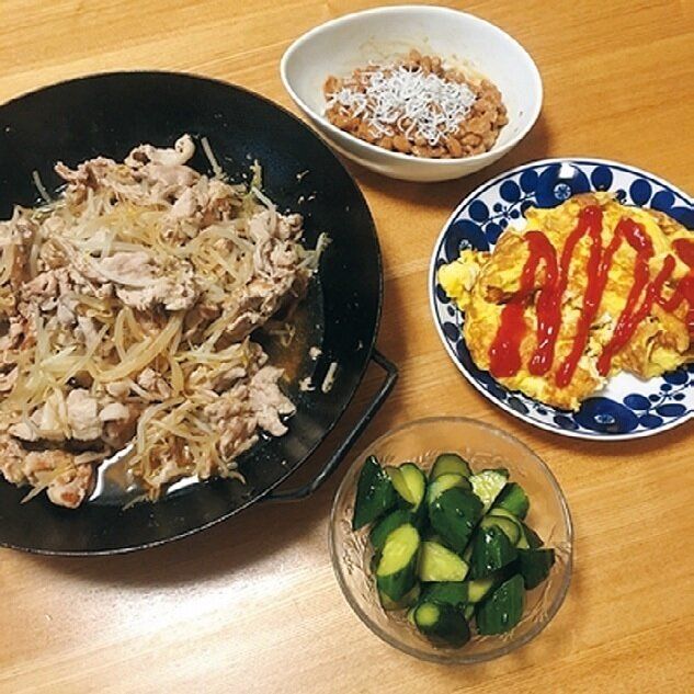 その日、冷蔵庫の中にある物を見ながら「4つのカテゴリー」に当てはめて献立を考えています。メインも、煮るだけ、焼くだけ、炒めるだけ。勝手にバランスのよい献立になりますよ。